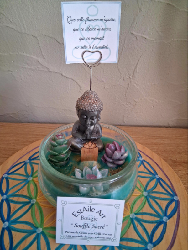 La bougie Souffle Sacré est une invitation à la méditation et au silence intérieur.
